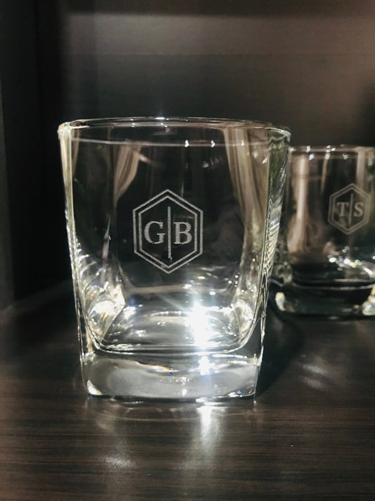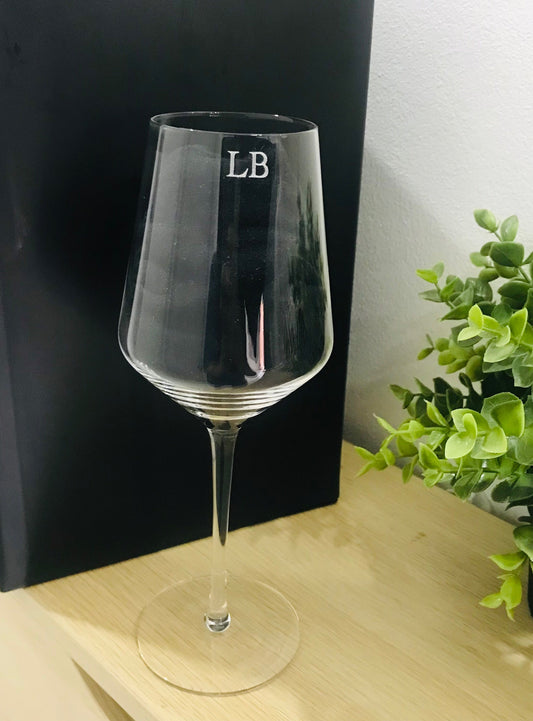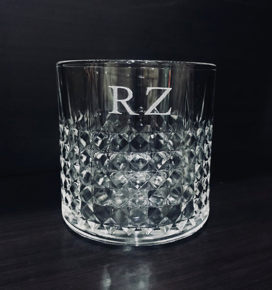 Engraved glass with initials for Christmas