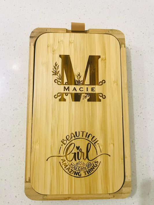 Engraved bamboo jewellery/trinket box for Christmas